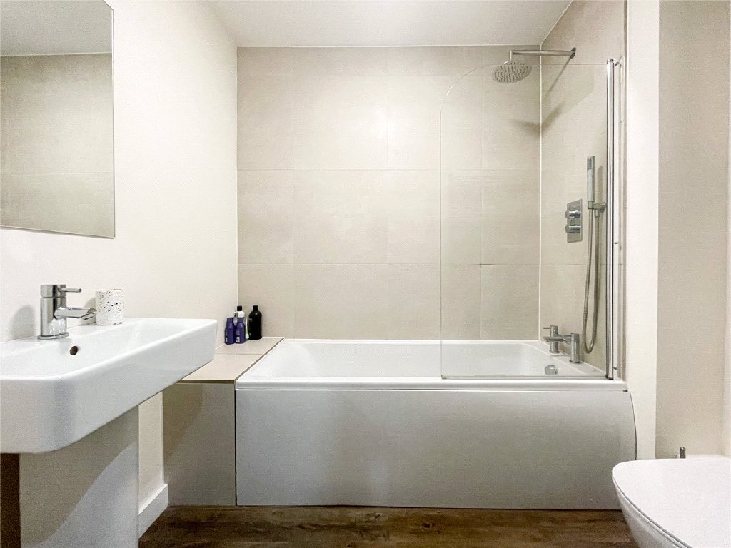 The accommodation includes an entrance hall, open-plan kitchen/sitting room with a stylishly fitted kitchen with integrated appliances including a fridge-freezer, dishwasher, oven, hob and washing machine. Windows and a door leading to the private and sizeable rear garden. The double sized bedroom is positioned beside the bathroom, which is largely tiled with a bath and shower over, wash hand basin, heated towel rail and WC.
