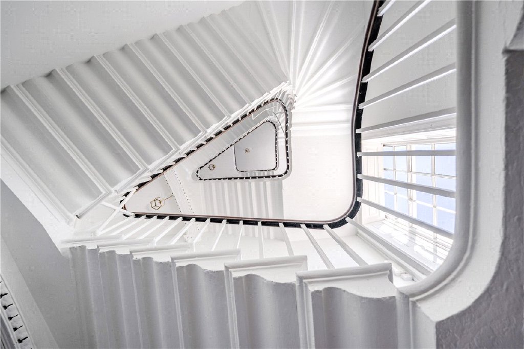 This is the most delightful apartment that fuses modern living with period features and makes the most of its southeast facing views. The communal hallway is light and bright with a unique spiral stone cantilever stair accessing all floors.