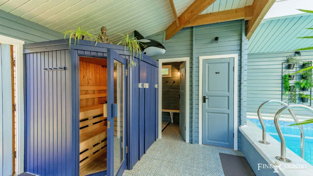 The outbuilding is the unexpected moment that lifts this property into different territory. Set within the garden, it houses an indoor swimming pool, a gym area, a sauna and a suite of changing and shower facilities. Works in recent years have focused on making the building function as a proper leisure space: redecoration, a new dehumidifier to manage the environment and the sort of finishes that make it feel like an extension of the home rather than a bolt-on. An air-source heat pump provides primary heating, supported by a separate gas boiler to keep the temperature steady through colder spells and to supply the generous walk-in shower.