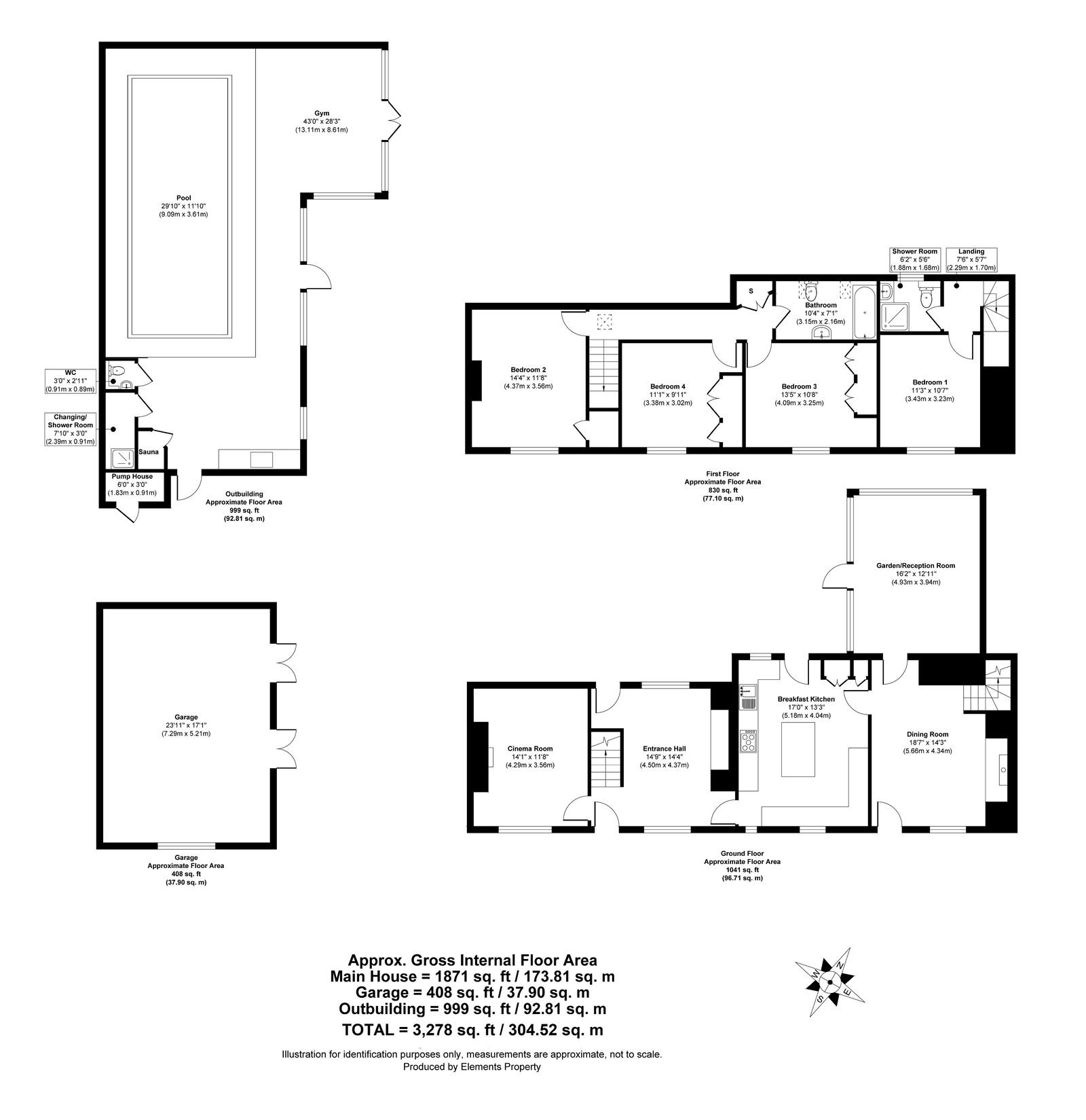- Large Outbuilding Housing an Indoor Swimming Pool with Sauna and Gym