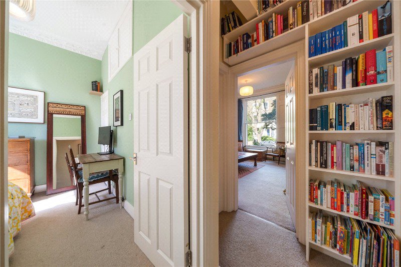 The first floor offers consists of a bright reception room facing the front garden and is complete with the original Victorian cornice, a large sash window and large built-in cupboard. Nestled behind the reception is second bedroom that offers built in wardrobe and pleasant views of the rear garden.