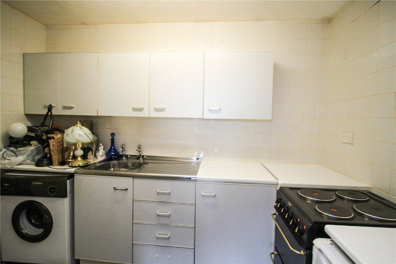 Kitchen 9'8 x 6'1:- Kitchen comprising of working surfaces with base and eye level units. Stainless steel sink unit. Tiling to walls. Built-in cupboard.