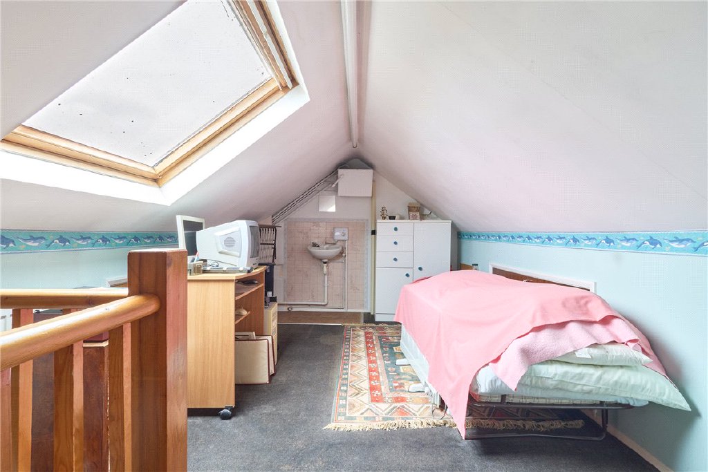 The top floor houses a spacious fourth bedroom with useful eaves storage, making it an ideal guest room once updated or if the additions of dorma windows added then spacious principal.