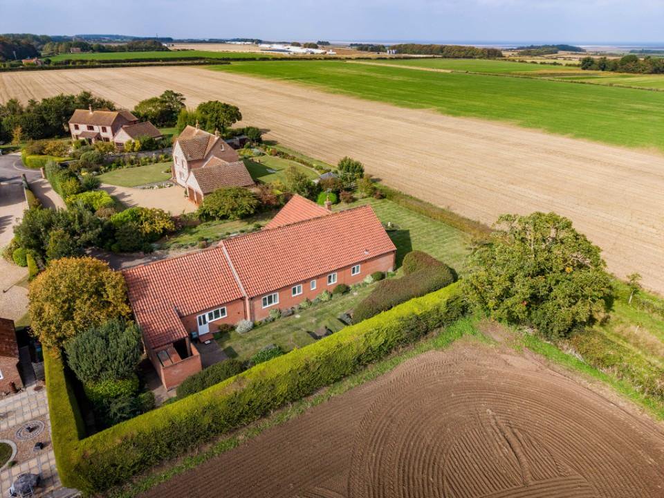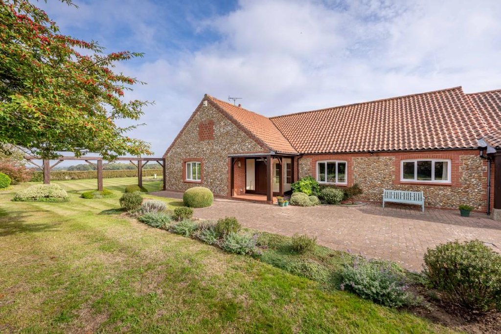 Set in the tranquil village of Langham, just two miles inland from the North Norfolk coast, this substantial brick and flint bungalow combines privacy, comfort and picturesque views, offering an exceptional opportunity for those seeking spacious single-storey living in a coveted rural setting.