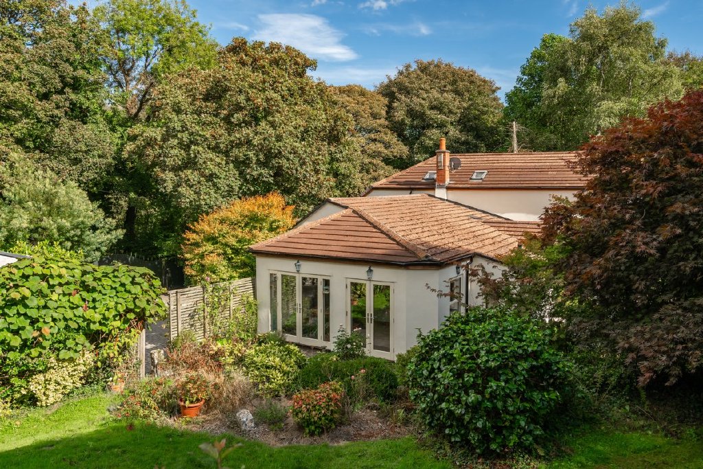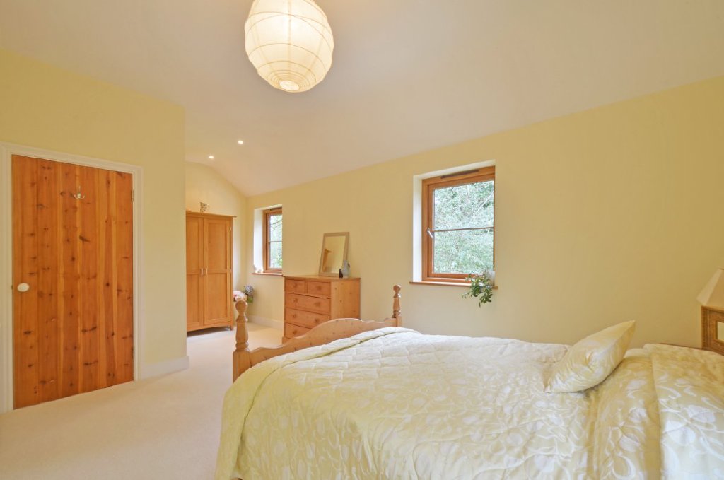 The spacious, light-filled home was originally a traditional barn and has been thoughtfully and extensively extended to create a substantial five-bedroom residence that blends rustic charm with modern living. The property retains characterful features such as granite finishes and a woodburning stove, while offering generous, open-plan living spaces with high ceilings totalling circa 2,500 sq ft. Views from the property via the large french doors, as well from the balcony in the principle bedroom suite overlook the gardens and land within the property.