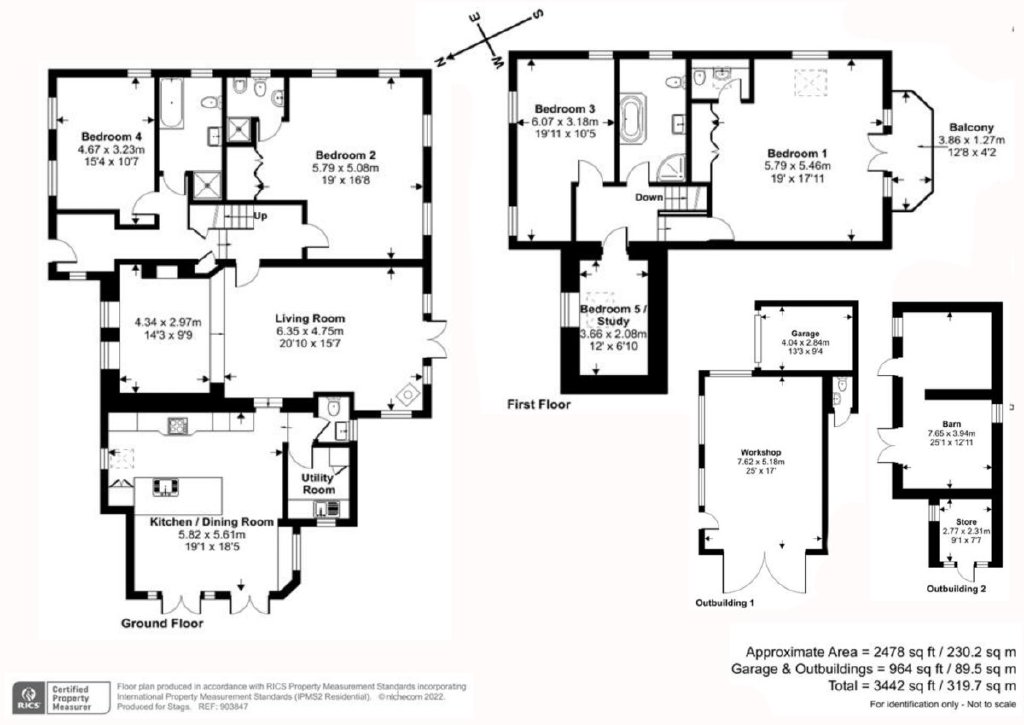 With some bedrooms located on the ground floor, two of the five bedrooms benefitting from en-suite facilities, as well as clear potential to develop the garage, workshop and outbuildings, as well as further extending the house, the layout