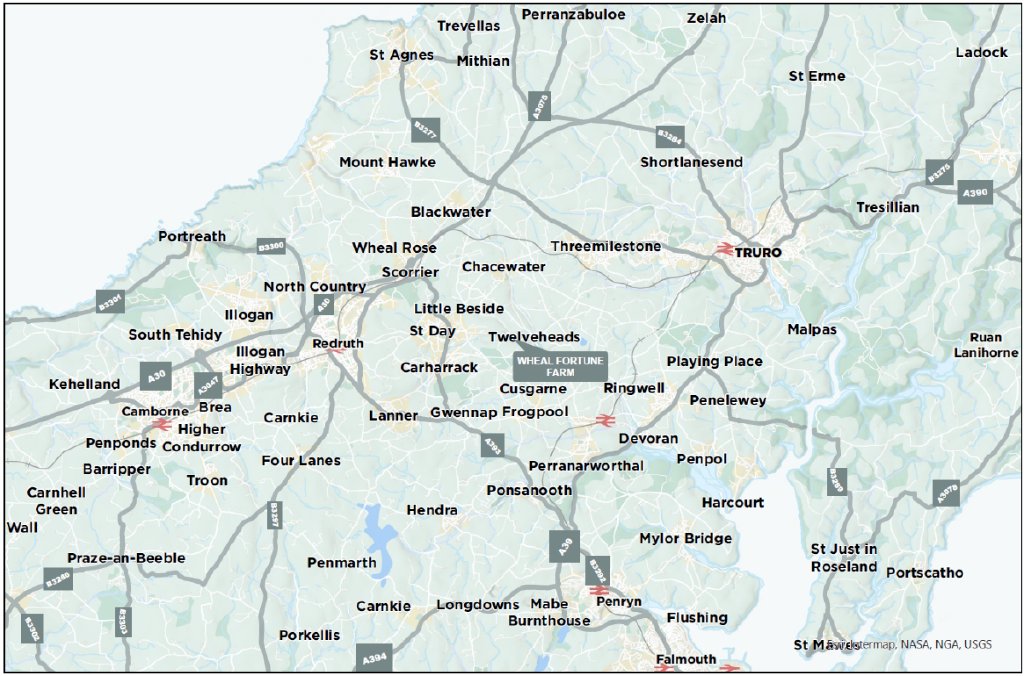 Positioned in central Cornwall a few miles from the recently upgraded A30, Wheal Fortune Farm has the ability to access all that Cornwall has to offer, from the quiet and secluded creeks and rivers of the Falmouth and Helford estuaries, ideal