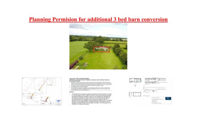 A rare opportunity to acquire a versatile rural residence with development potential, set within approximately 1.25 acres on the outskirts of the sought-after village of Hinstock. Little Ropes is a detached five-bedroom bungalow enjoying far-reaching views across the rolling North Shropshire countryside, offering a wonderful blend of space, tranquillity and future potential. The property, formerly a smallholding, now presents extensive gardens, a range of outbuildings and the significant advantage of planning permission to convert an existing barn into a separate three-bedroom dwelling with its own private access — ideal for multigenerational living, guest accommodation or an investment opportunity. The House • Five bedrooms, including a principal bedroom with en-suite • Generous living room with a picture window framing countryside views • Dining room • Kitchen with pantry/utility room • Family bathroom, separate shower room and an additional WC • Extensive attic storage with scope for conversion (subject to planning permission) Grounds & Outbuildings The grounds extend to around 1.25 acres and are beautifully arranged to include sweeping lawns, mature trees, established shrub borders, a productive orchard, vegetable garden and colourful flower beds. A brick-built workshop with power provides an excellent space for hobbies or a home business, while a compact garage offers secure storage close to the house. Situated approximately 100 metres from the main residence is a substantial barn — benefiting from planning permission — alongside a further detached garage of approximately 40 sq m, equipped with power, vehicle doors and generous storage. Planning Permission Planning permission granted for the conversion of a barn into a three-bedroom dwelling with independent access. Application No. 24/04387/PMBPA. Location Little Ropes lies on the edge of Hinstock, a well-regarded village conveniently positioned between Newport and Market Drayton (approx. 5 miles).