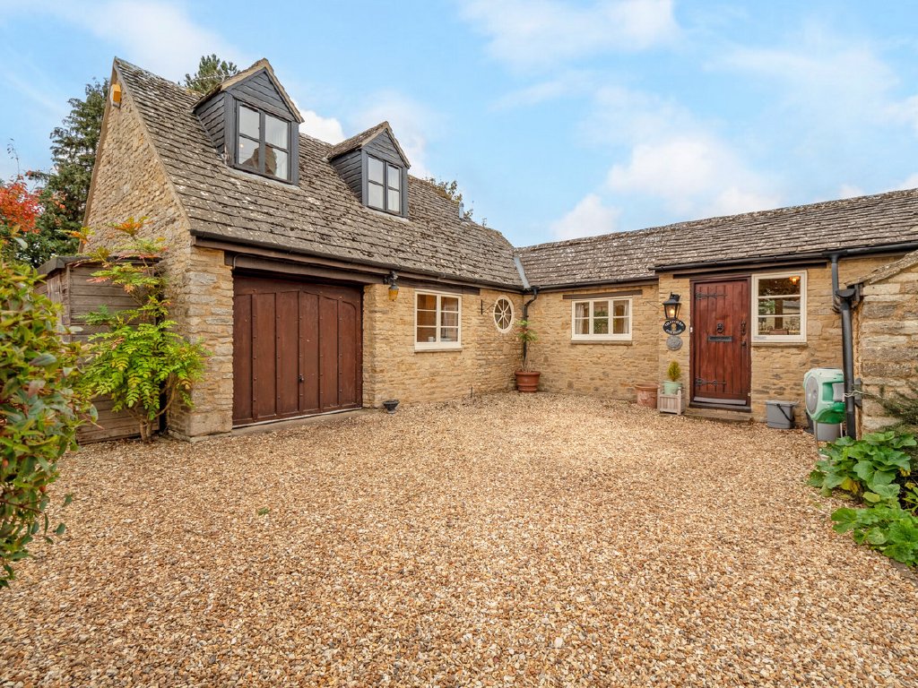 The cottage sits well back from the lane behind a pretty, stone-walled front garden filled with flowering plants and shrubs. A wide gravel drive offers ample parking and leads to the garage, while the gardens to the rear are private, beautifully planted, and designed to be enjoyed throughout the seasons.