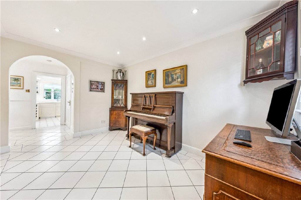 On the ground floor is a spacious welcoming hallway with direct access to the garage, a W/C and a well-equipped kitchen dining room. This leads onto a bright conservatory with double doors leading to the south westerly aspect garden, which is ideal for entertaining.