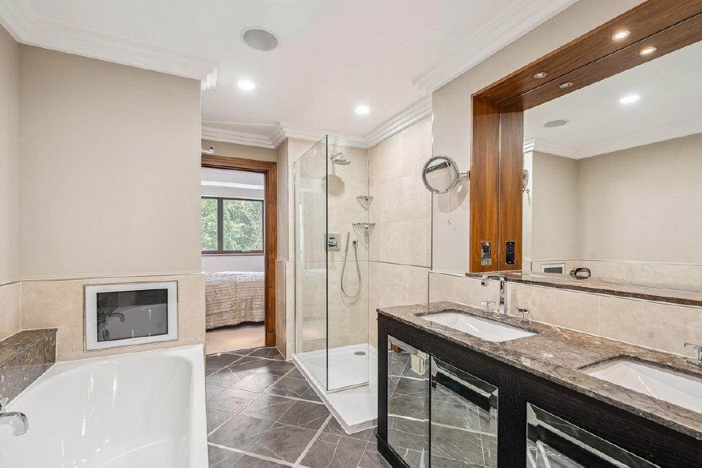 The manicured gardens and grounds, spanning about 25 acres, include a serene water garden and an all-weather tennis court. Residents also have exclusive access to the Charters Spa facilities, which feature an indoor pool, sauna, steam bath, treatment rooms, gymnasium, and a snooker room. These facilities are currently undergoing refurbishment to further enhance the luxurious living experience but are shortly due to be finished.