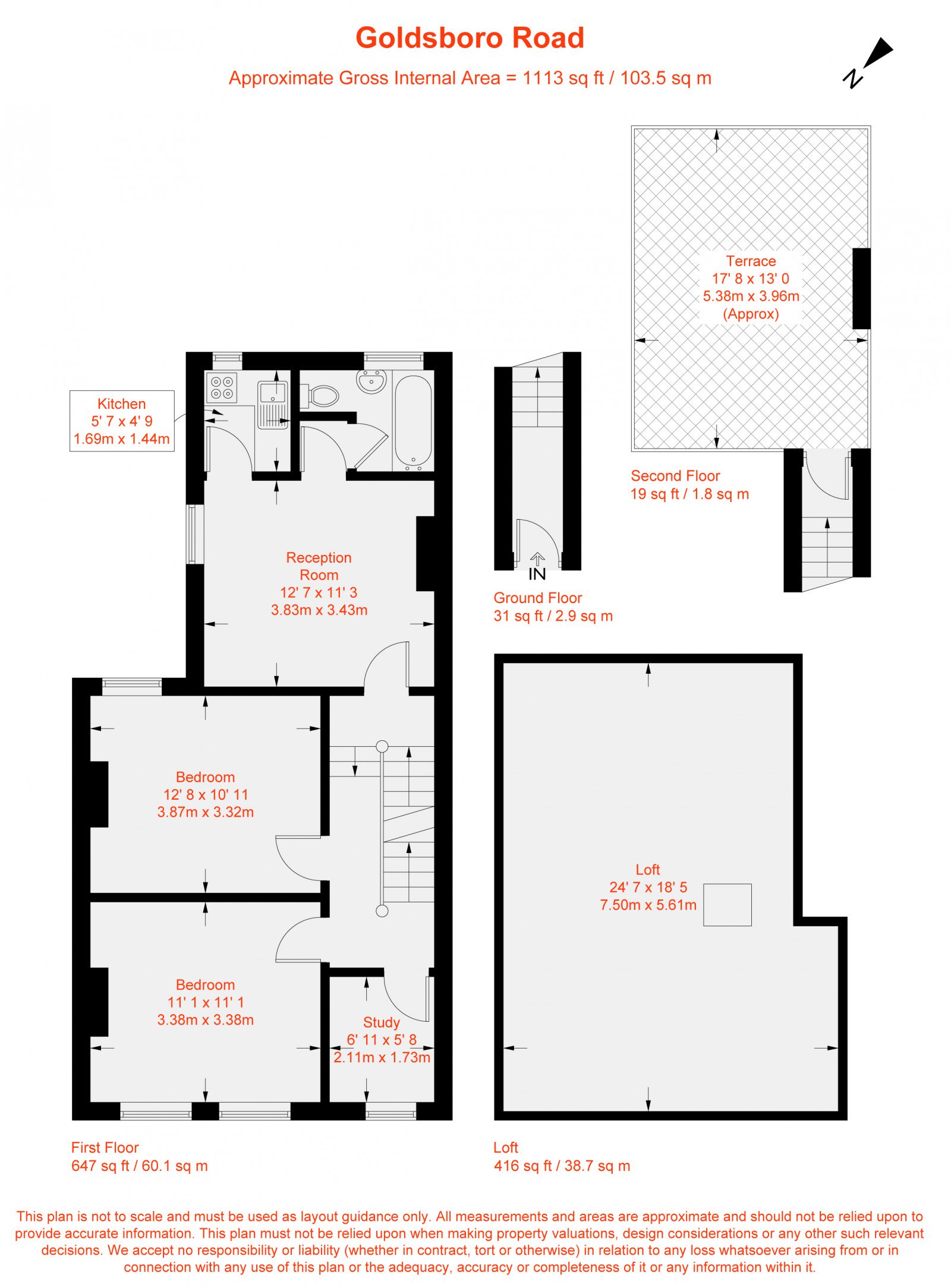 The upper floor flat comprises of two double bedrooms and a third single bedroom/office space at the front of the property. There is a reception room, kitchen and bathroom to the rear, as well as a spacious private terrace. This flat also benefits from a substantial loft space that can potentially be extended into (STPP).