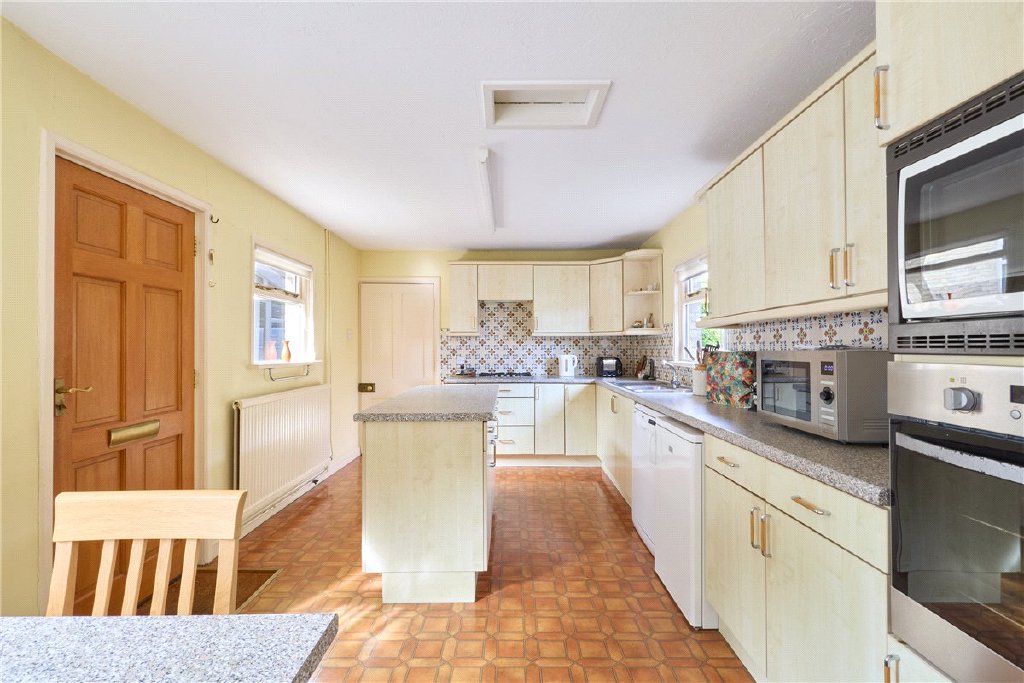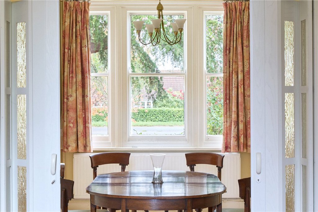 The welcoming entrance hall leads to a choice of three reception rooms, including a formal sitting room, dining room and breakfast room with generous proportions and period detailing. To the rear, a light-filled sun room connects seamlessly with the garden. A utility room with adjoining shower room provide a practical space that is crucial for family life. The kitchen/breakfast room enjoys views over the garden and opens conveniently to the outside, making it the heart of the home.