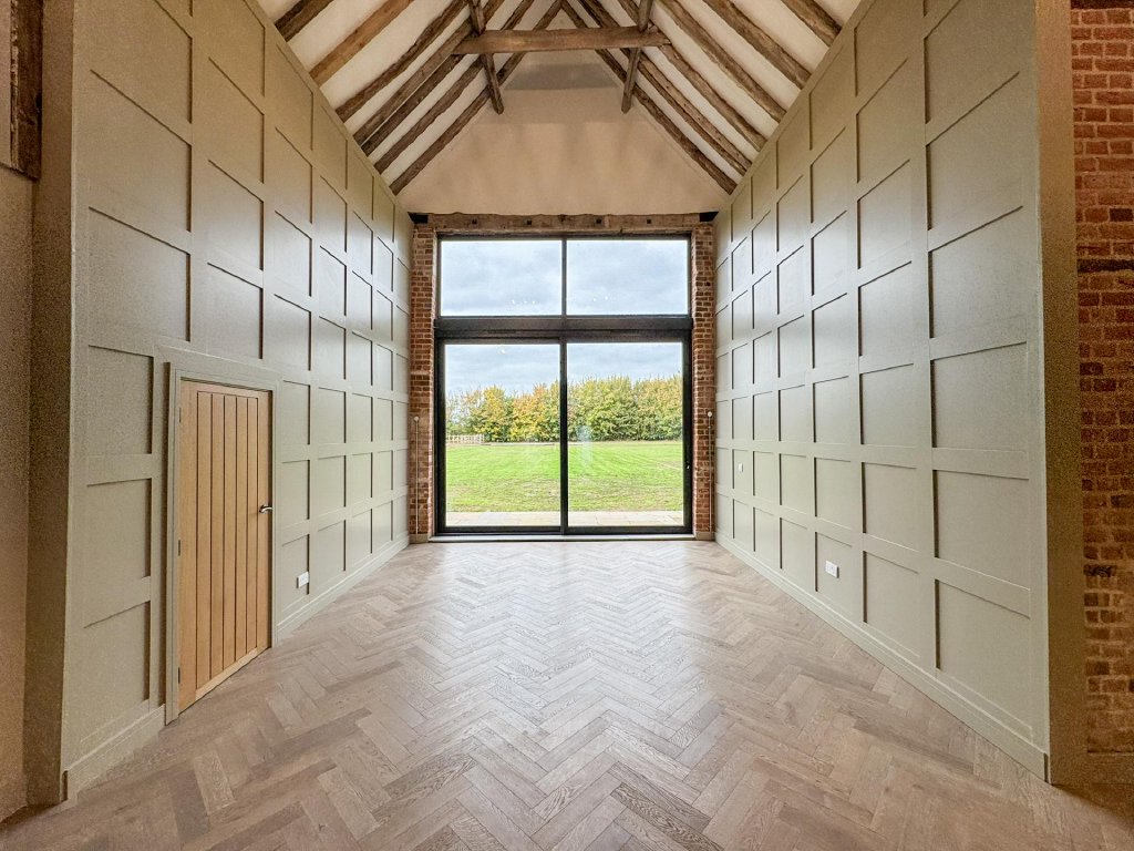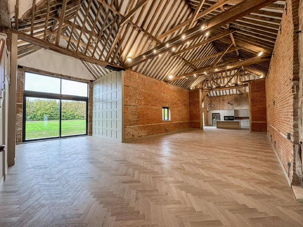OVERVIEW This exceptional listed barn offers 4,320 sq ft of beautifully converted living space set within over half an acre of landscaped parkland gardens. The property seamlessly blends historic character with modern luxury, featuring five spacious en-suite bedrooms, an expansive open-plan lounge and dining area, and a striking panelled gallery that adds a sense of grandeur.