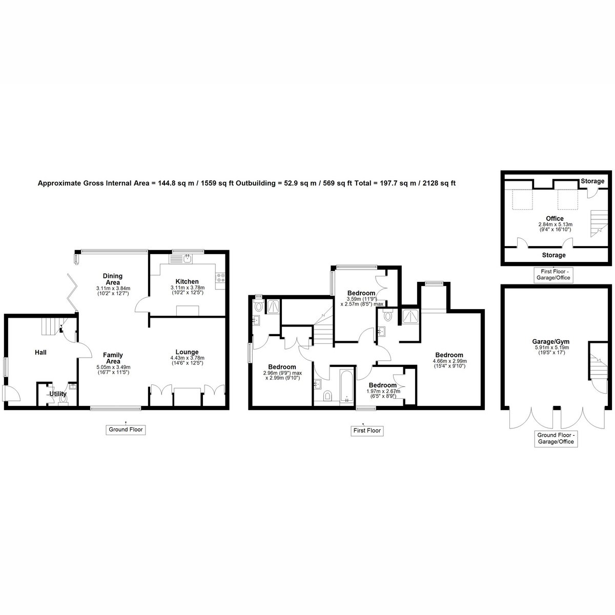 - Separate office or studio above the garage with underfloor heating