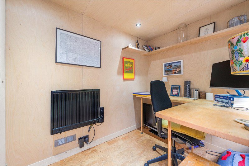 Accessed via its own front door, this property is presented across the lower ground and raised ground floor of the building. Caringly refurbished by the existing owner and offered in great condition, the property comprises a large open-plan kitchen/reception to rear, complete with polished concrete flooring, fully fitted kitchen, built in appliances and tons of natural light. The property further comprises a spacious double bedroom to front and one on the first floor. Further boasting a spacious family bathroom as well as a highly versatile home office in the garden.
