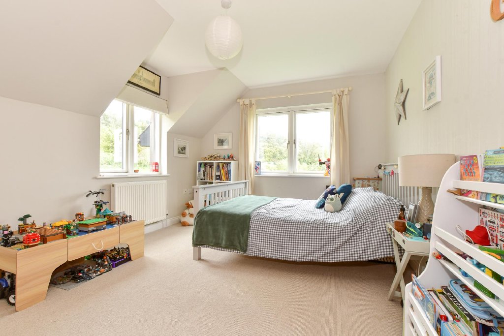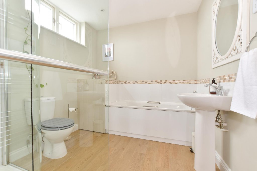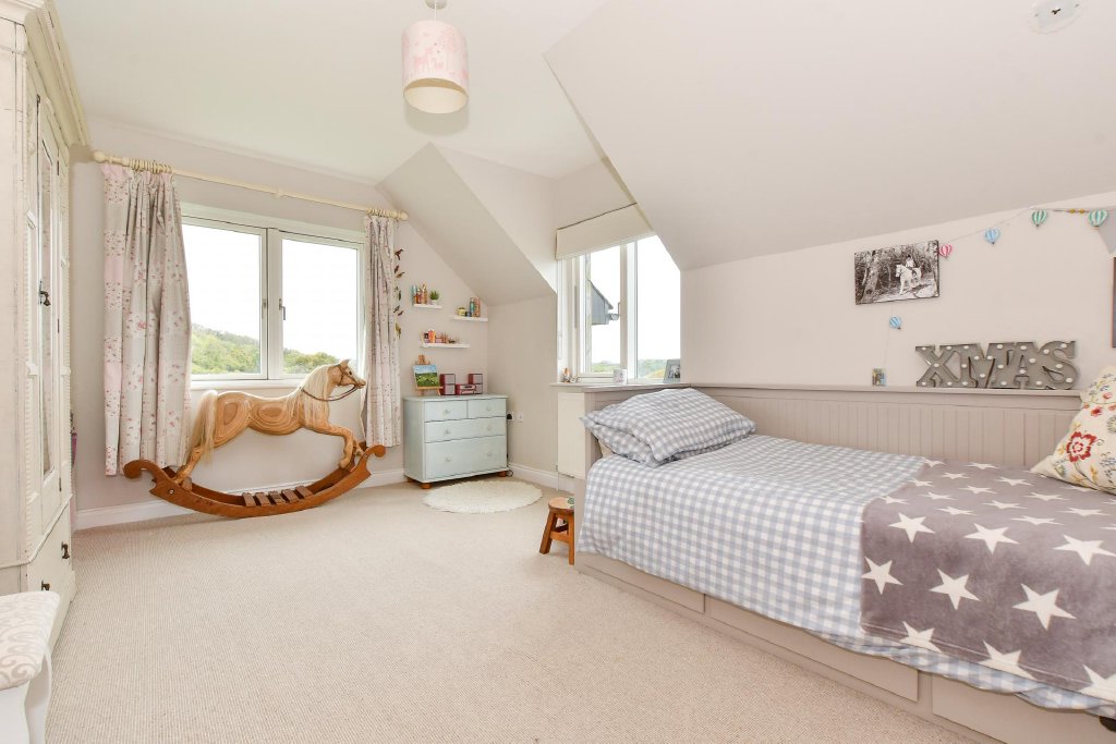 The first floor continues the home’s bright and airy theme, with a galleried landing leading to four generous double bedrooms, each offering charming rural outlooks. These are served by a stylish family bathroom with both a bath and a separate shower enclosure.