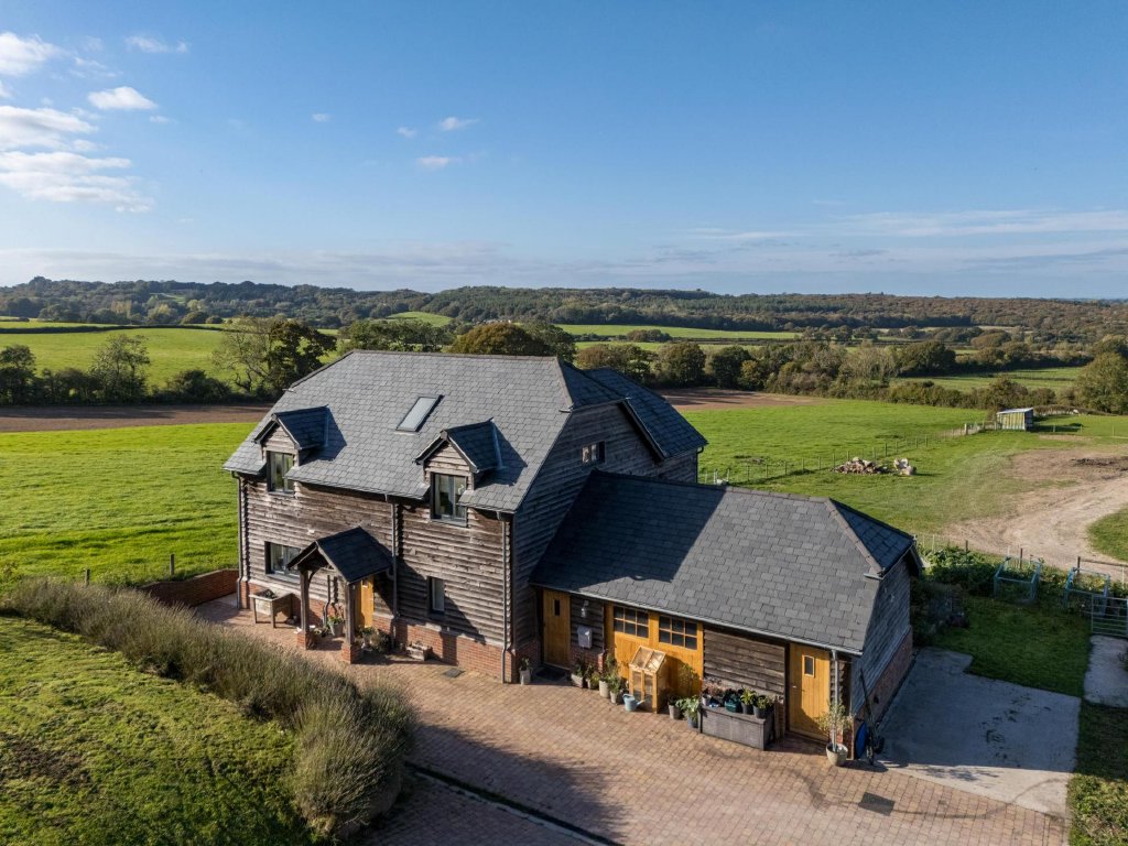 Set amidst breathtaking countryside and enjoying far-reaching views stretching across to Portsmouth, Southampton, and beyond, this impressive, detached timber-clad residence offers a rare opportunity to own a modern rural retreat of exceptional quality. Designed and built in 2018 to make the very most of its secluded position and ever-changing vistas, the home seamlessly blends contemporary living with an idyllic pastoral lifestyle.