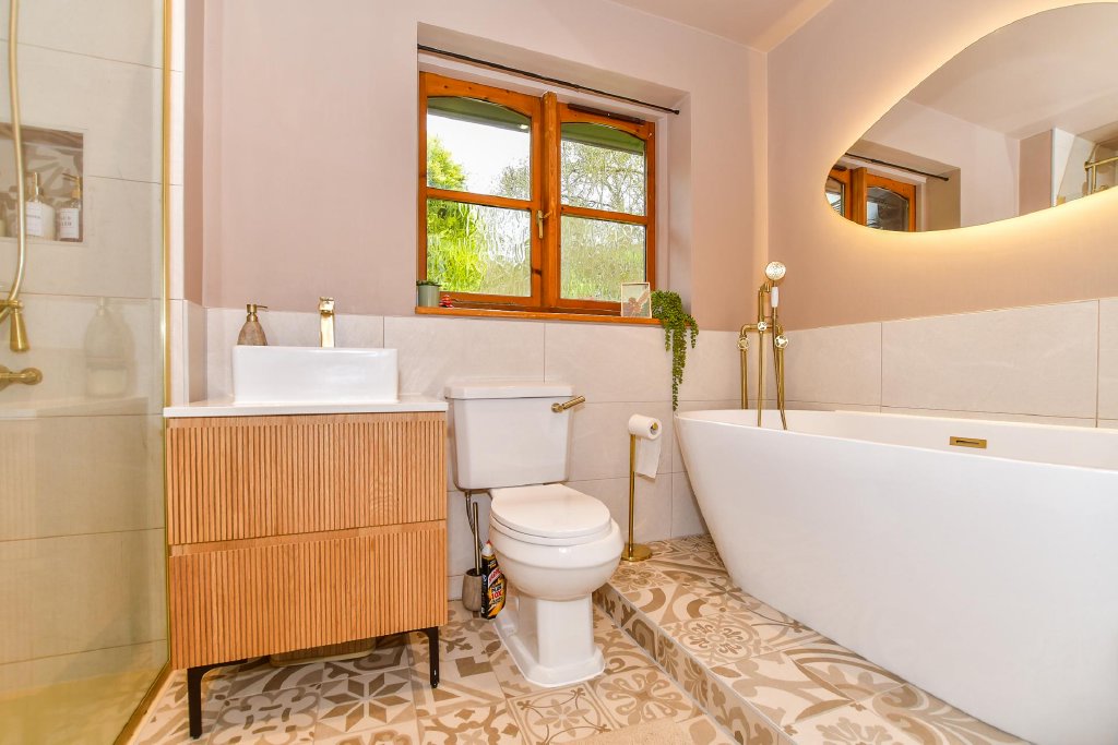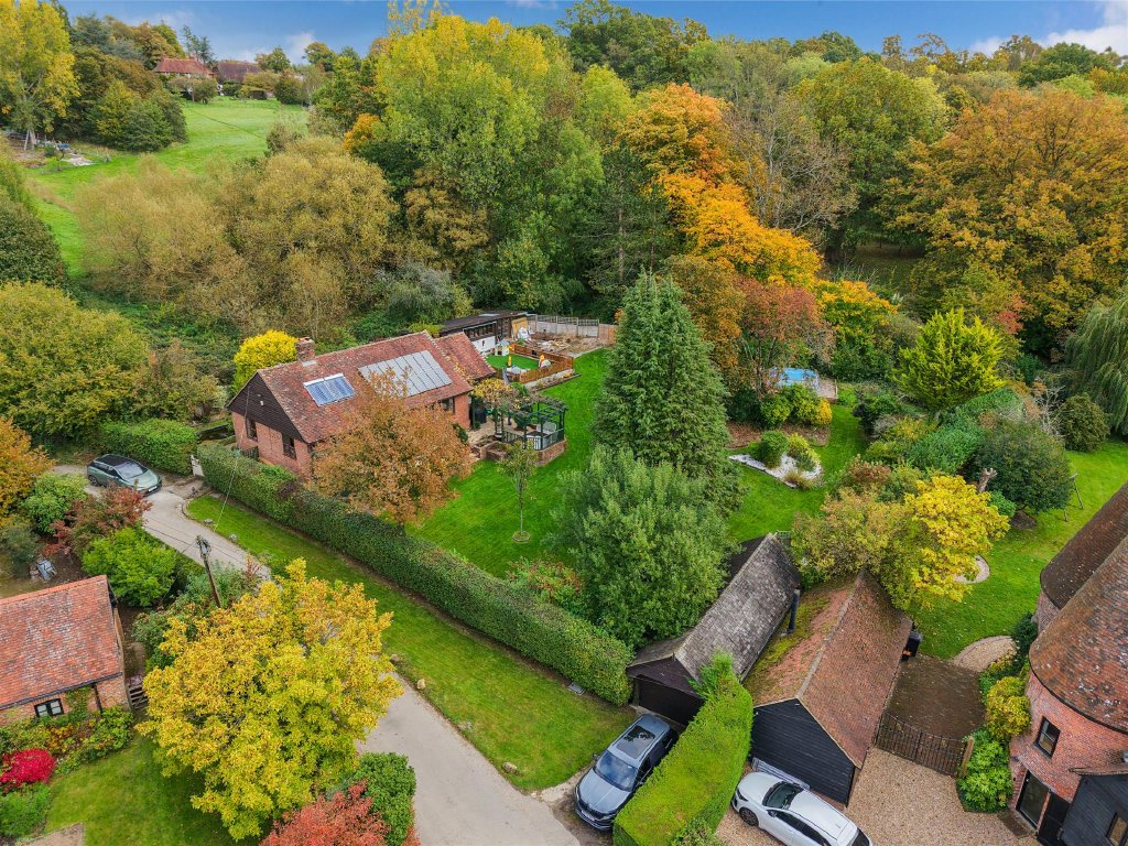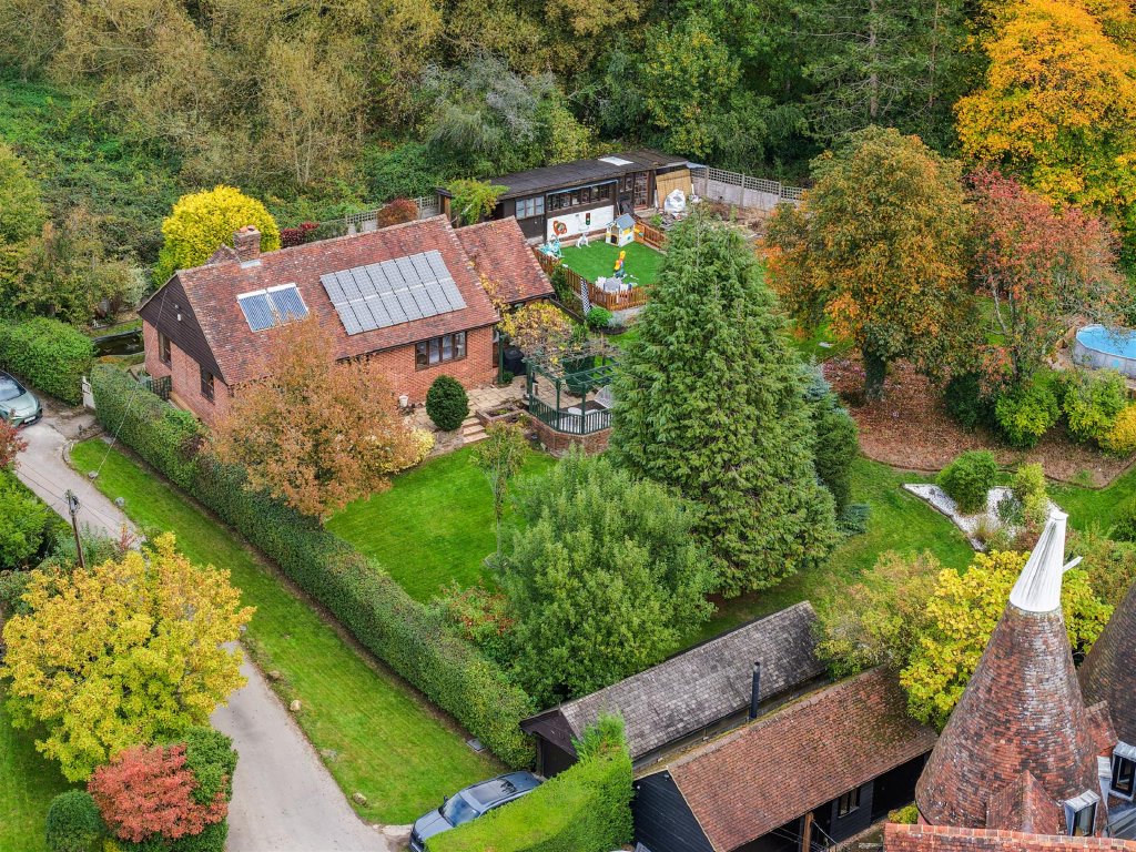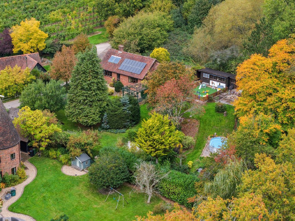 The current owners view: “We’ve loved the peace and natural beauty of living here. The garden gets the sun all day, and from the terrace we can watch buzzards, kites, and squirrels while enjoying the open countryside views. At night, the sky fills with stars and we often hear owls calling from the woodland beyond — it’s magical. We can walk for hours with our dog through the surrounding farmland, watching the seasons change — and in the rainy months, seeing the small brooks and waterfalls come to life is our favourite time of the year. It’s so tranquil, yet we’re just minutes from Horsmonden village.”