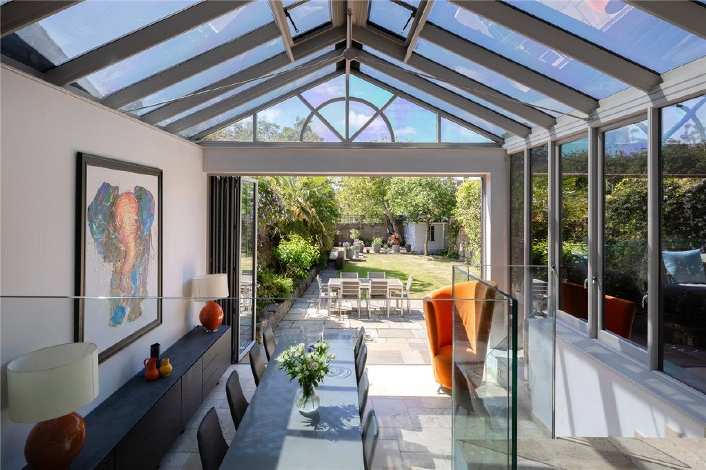The bespoke kitchen opens into a generous family room with a log burner and a magnificent orangery. There are two additional reception rooms, including a games room/cinema room. The five bedrooms, served by three elegant bathrooms, include a luxurious master suite with an en suite bathroom with an in built steam room function, built-in wardrobes, and a private terrace. Bedroom 5, located on the second floor, boasts access to a large roof terrace that offers delightful views of the gardens and York Minster beyond.
