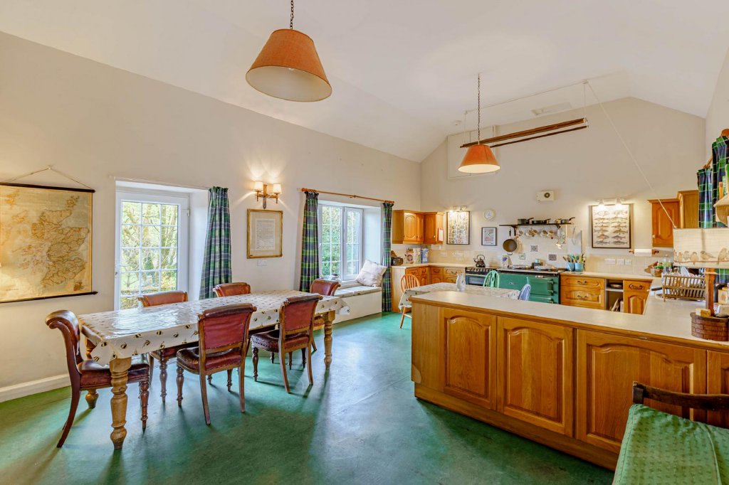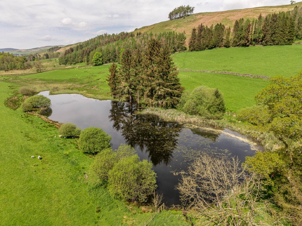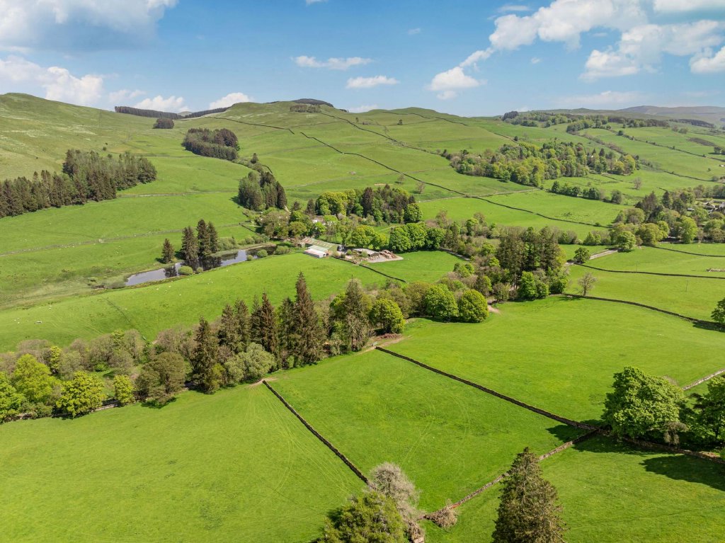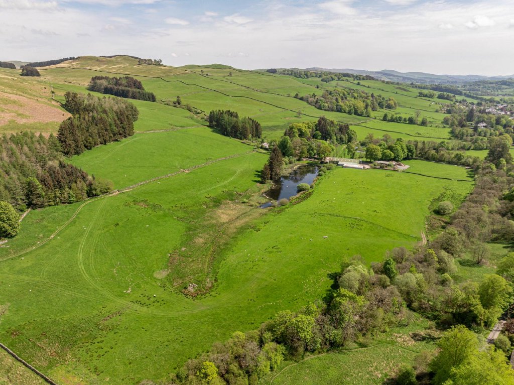 Surrounded by open countryside, it also benefits from the Dalwhat Water meandering through the estate. Largely sustainable on its own heat and power, there are a range of outbuildings and stores to include a farm office, studio, workshops, boiler & woodchip store, byre and garage.