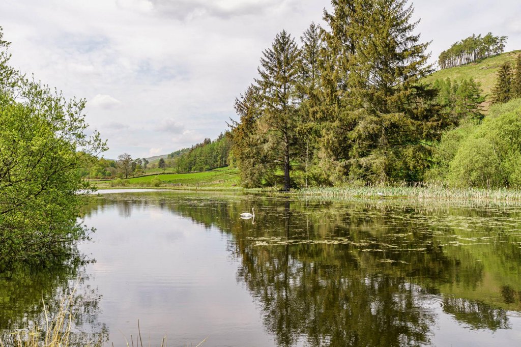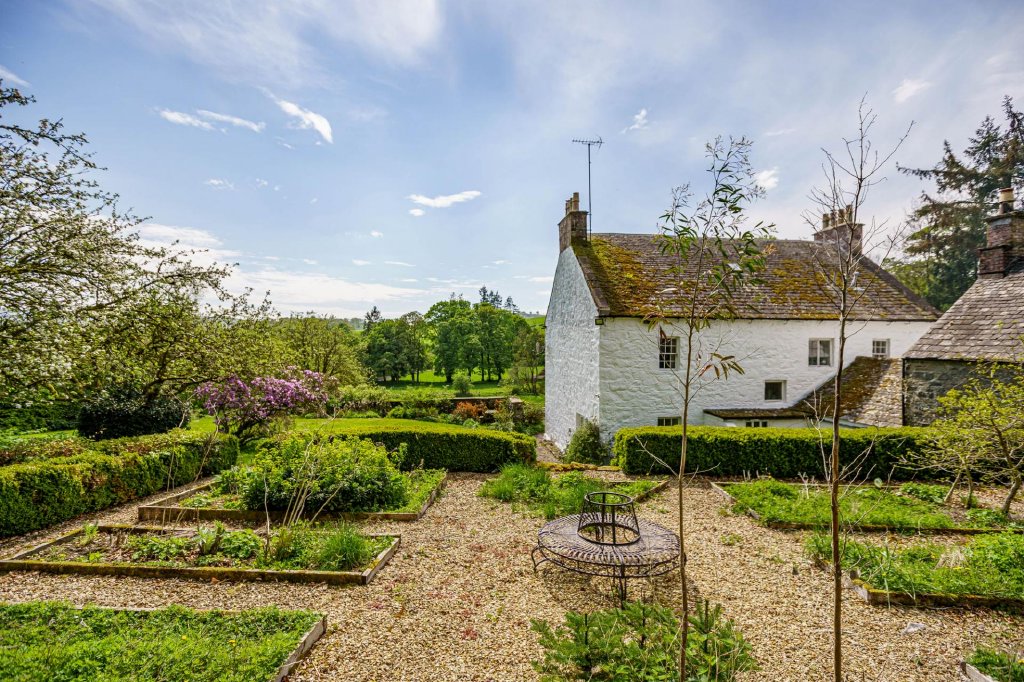 The property is set within beautiful established walled garden grounds comprising wooded areas, lawns, sunny terrace and specimen trees and plants. The Dalwhat Water meanders through the garden, and there is a large pond with a jetty.