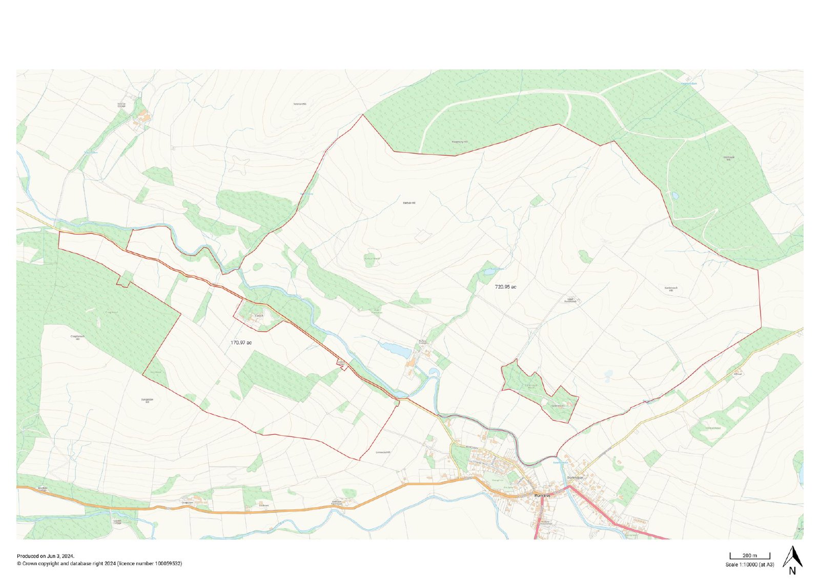 Comprised of the farming lands of Caitloch, Bardennoch and Barbuie Farms which extend to 877 claimed acres (SGRPID 354.90ha) or thereabouts including c.150 silagable acres; 454 acres good permanent pasture; 240acres hill ground and 33 acres of forestry. The land is well draining; there are good water supplies (a mix of natural and trough) in all land parcels and the dykes, fences and gates are in good condition and stock proof. The land is all currently in grass and has had Lime and Fertiliser applied recently and is in good heart. Offered for sale with vacant possession upon completion, the land is currently managed on Seasonal Grass lets. Details of the current lets can be provided to interested parties.