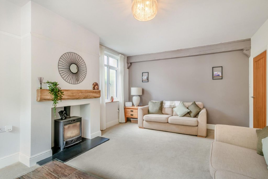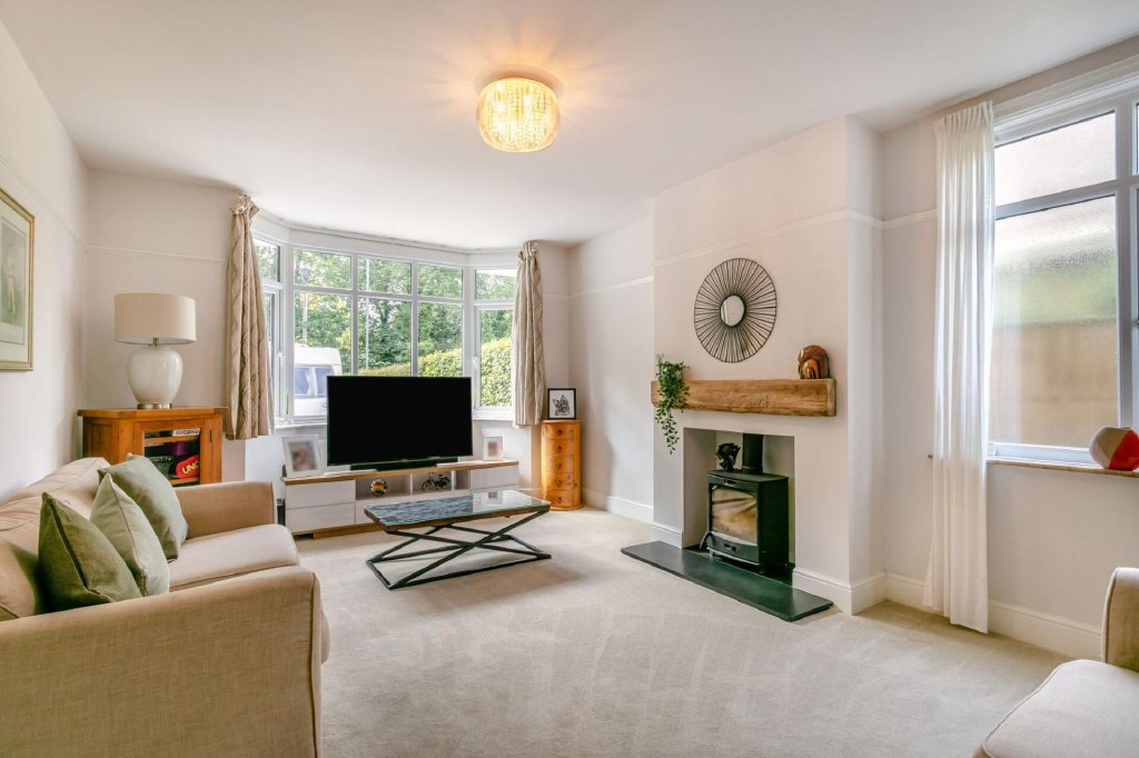 The dual aspect sitting room features a fireplace with a wood burner, adding a warm and welcoming atmosphere to this great sized room. A large bay window looks out of the front of the property.
