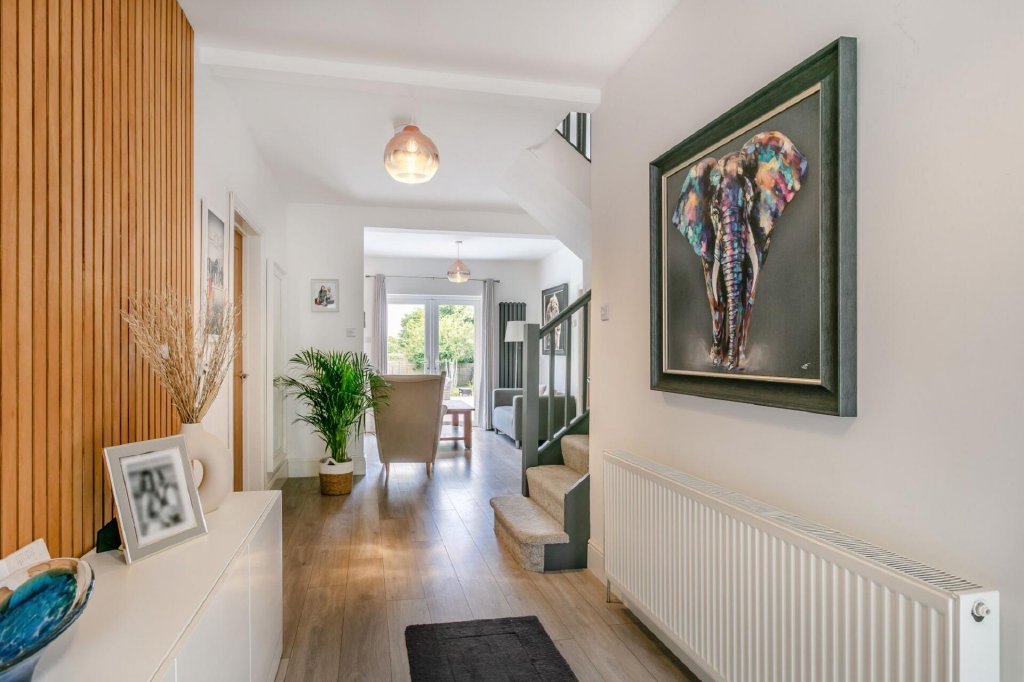 As soon as you step into the wide and stylish entrance hallway, you are greeted with a fantastic view through the property to the rear garden.