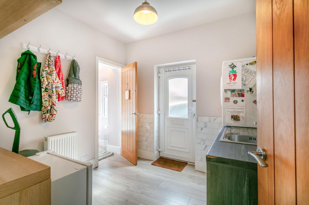 The utility room is located off the kitchen/seating area, providing a practical space for noisy appliances. It also has a door providing access to the side of the property, and a convenient downstairs cloakroom.
