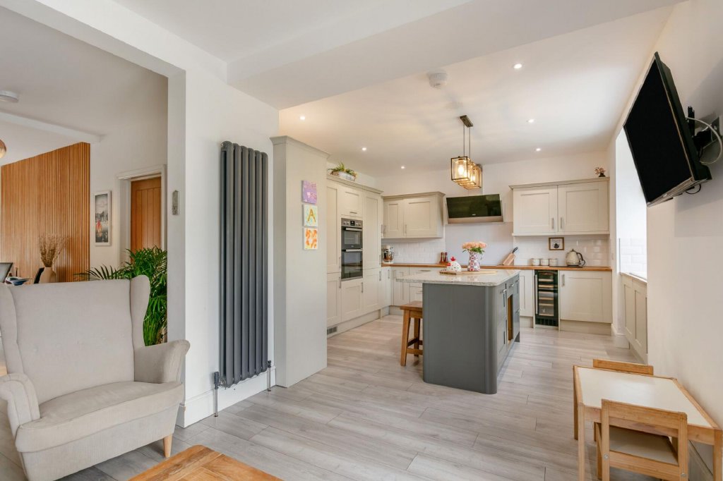 This property enjoys a separate dining room with another large bay fronted window to the front. There is flexibility in the layout of this property as there is room in the stunning open-plan kitchen and seating area for a dining table and chairs should you prefer to dine close to the kitchen with beautiful views and easy access to the garden. This would free up this room for other uses, such as a ground floor bedroom.