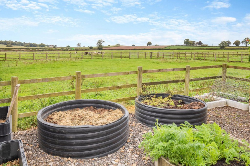 There are numerous parking areas and courtyards, the gated front paved area leads to a large metal framed barn with high roller door and power. To the side of the barn is a productive vegetable patch.