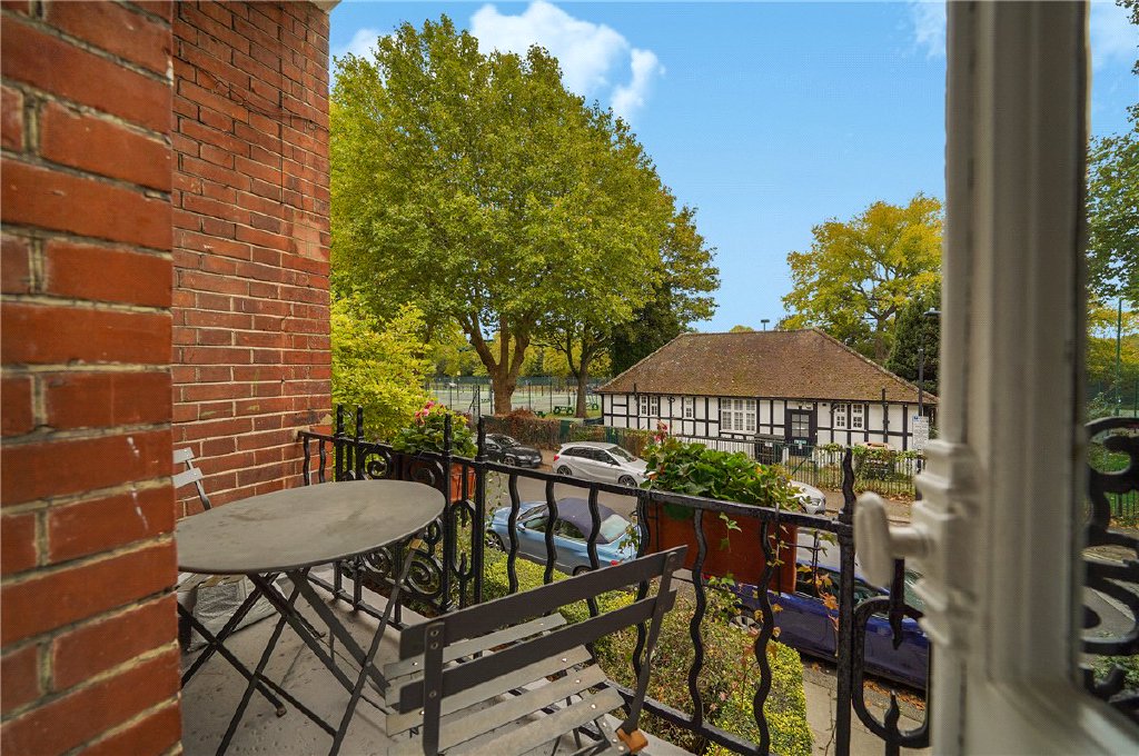 This bright and spacious flat offers generous proportions and elegant period features throughout. The accommodation comprises a beautiful south-facing, bay-fronted reception room with high ceilings. There are three well-appointed bedrooms, one of which opens onto a charming balcony with delightful views over the tennis courts.