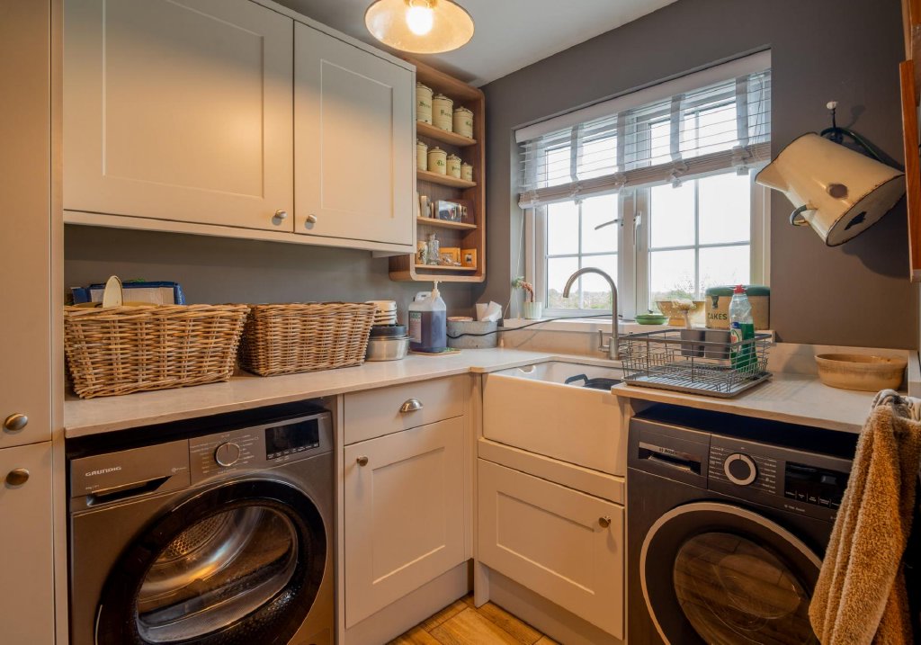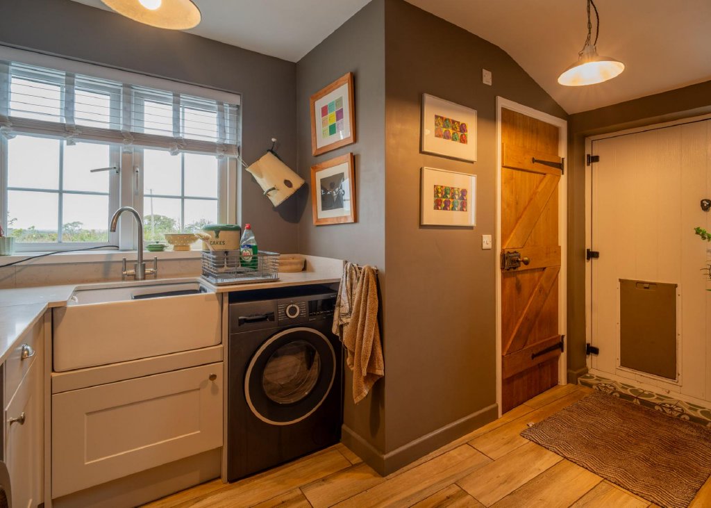 The Utility Room offers a second Belfast sink, side window, and access to the rear garden. A convenient cloakroom and a storage cupboard housing the boiler and fuse boxes complete this level.