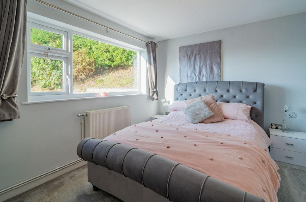 The property provides four well-proportioned bedrooms, including a front-aspect second bedroom with built-in wardrobes and a further room currently used as a study. The modern family bathroom offers a panelled bath with rainfall shower over, vanity unit and heated towel rail.