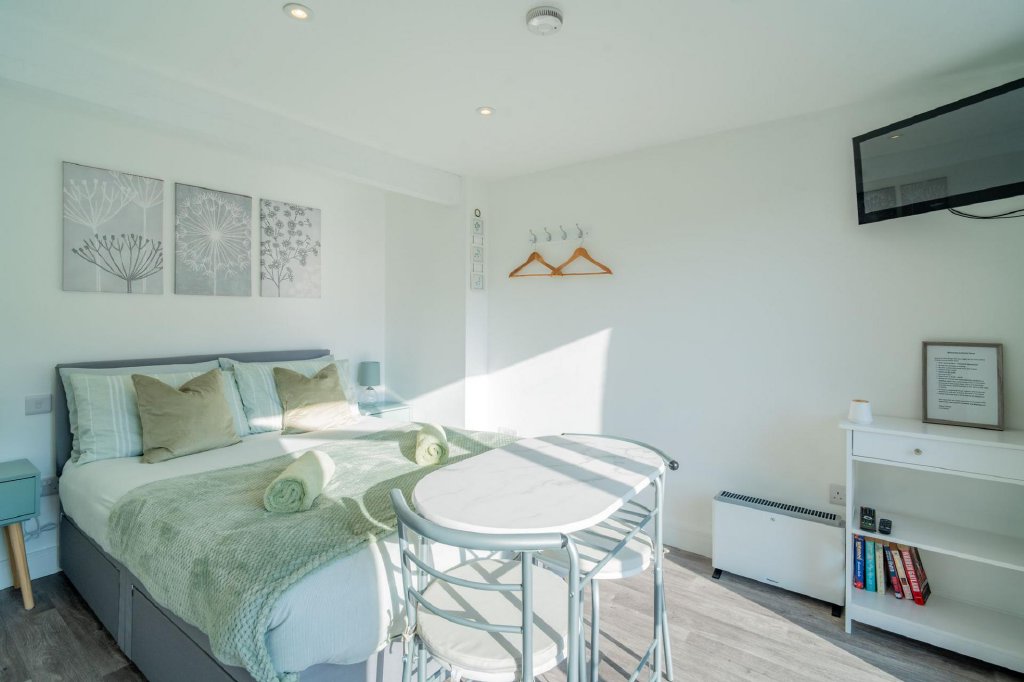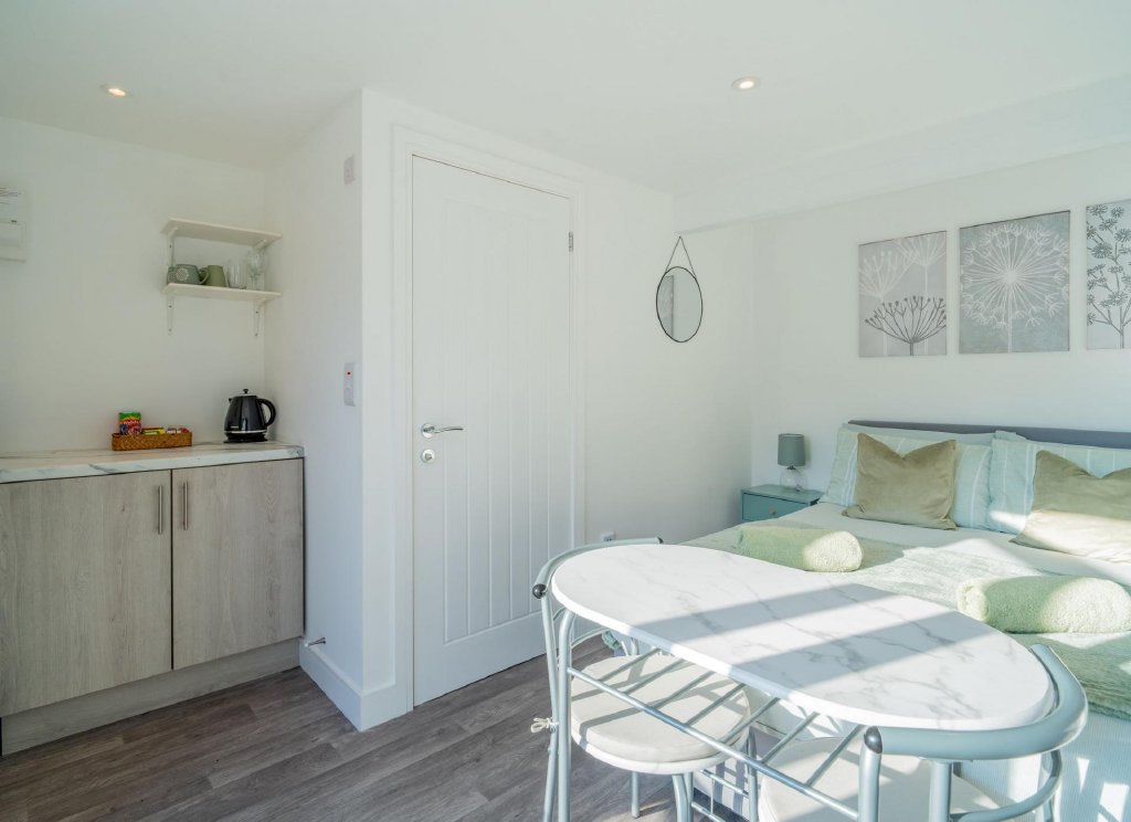 To the side, a beautifully converted annexe provides an ideal holiday let or guest accommodation, featuring a kitchenette, ash-grey flooring, and an en-suite shower room – perfect for multi-generational living or income potential.