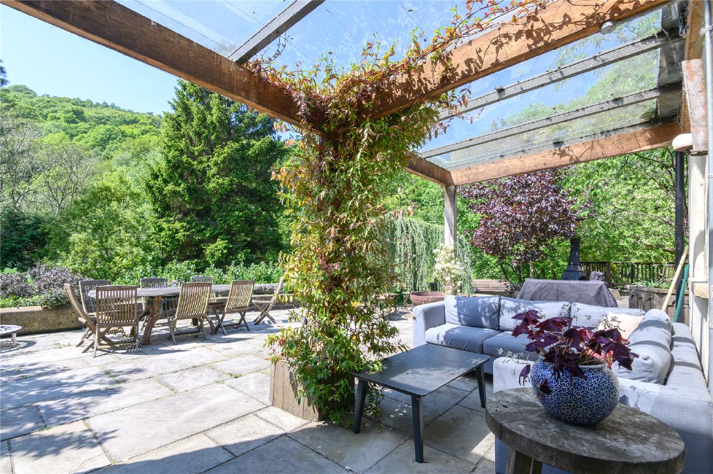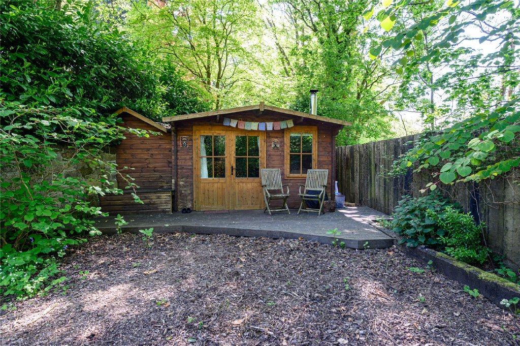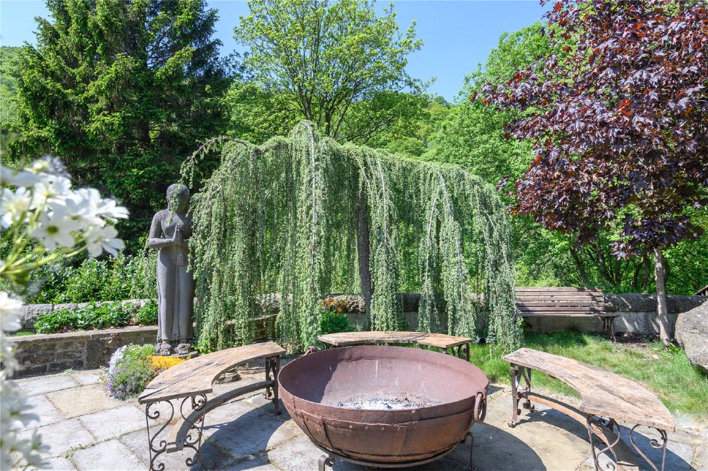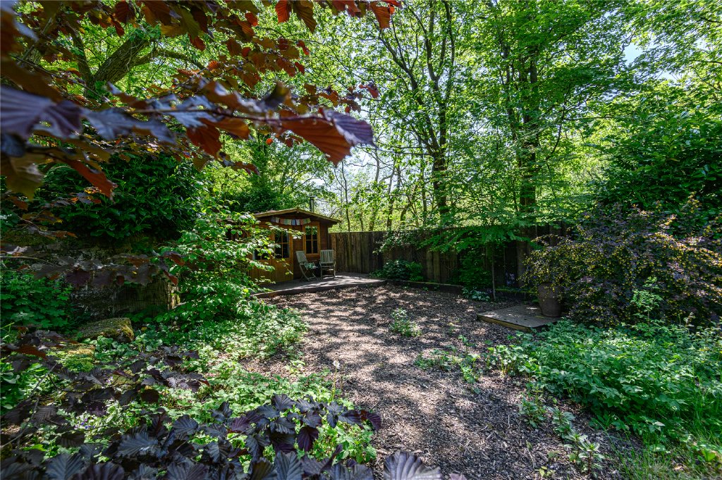 Dogbottom is set within its own woodland grounds at the entrance to the famous Hardcastle Craggs National Trust forest, offering total privacy and a true sense of escape. The setting is as practical as it is idyllic, with an expansive sun-drenched deck housing a wood-clad 2m hot tub that seats up to eight people, complemented by an outdoor hot shower. A further decked areas and a fire pit are positioned in secluded areas of the grounds offering space for complete relaxation or quiet contemplation. The lower garden area comprises a large allotment area and a wildlife friendly pond.