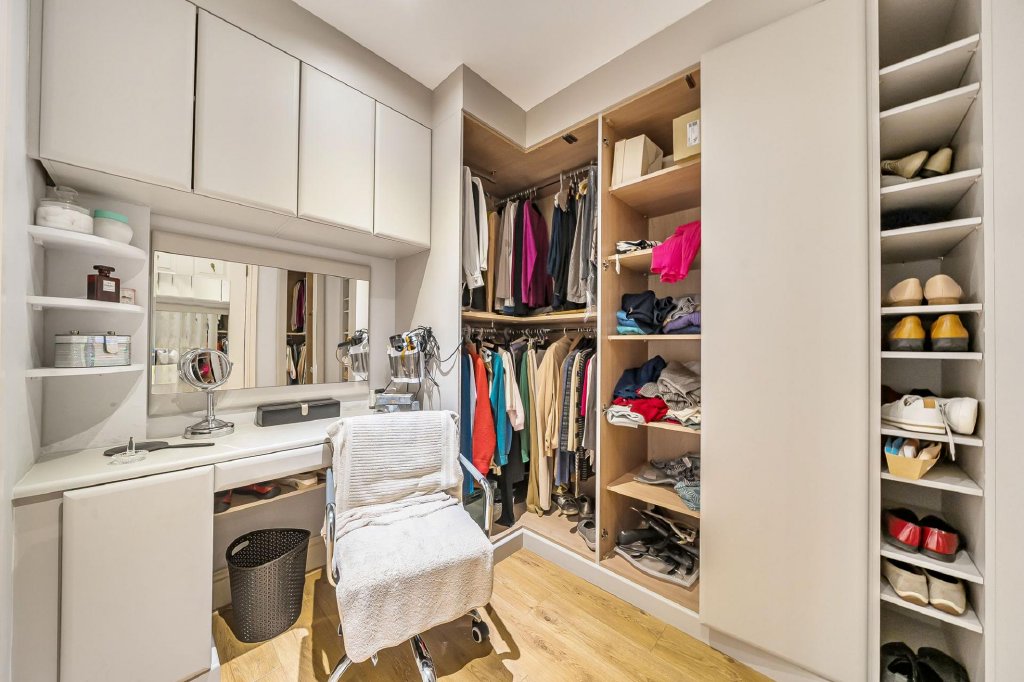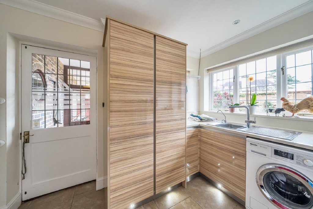 The kitchen is fully fitted with a comprehensive range of cabinets, stone worktops and Siemens appliances including an electric hob with extractor, a double oven, microwave and integrated dishwasher. Pull-out larders offer excellent storage, and a front-facing window adds natural light. A separate utility room provides additional storage and houses space and plumbing for a washing machine.