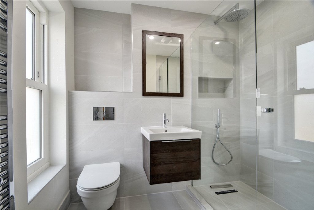 • Stylish bathrooms: High-spec tiled bathrooms with recessed mirrored cabinets, basin vanity units, heated and illuminated mirrors and built-in tiled shower niches for convenient soap and shampoo storage.