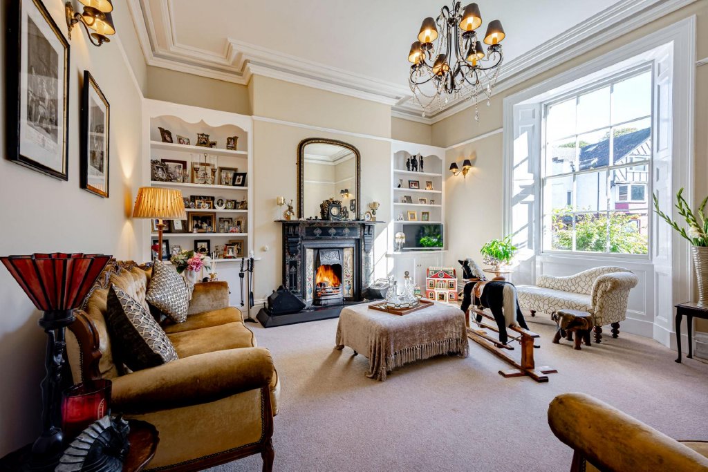 Built in approx. 1840, the property is entered through a stone portico into a glazed vestibule and tiled floor. The internal glazed door leads into the entrance hall featuring an elegant Georgian staircase along with period details including cornicing and ceiling rose. A door to the right leads to a large, bright sitting room. The decor combines traditional touches including deep cornicing, picture rail and skirtings and a period marble fireplace and hearth. There are attractive built-in cupboards to cleverly house the TV and 21st century technology. There is a second reception room which could be used as a living room, playroom or dining room with a stone fireplace and superb glazed door into the kitchen.