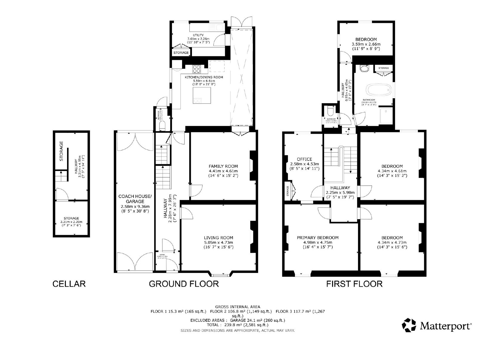 The property has off street parking to the front and a superb original coach house, ideal as a garage or for storage. This useful space runs directly from the front to the rear of the property, allowing access into the garden if required.