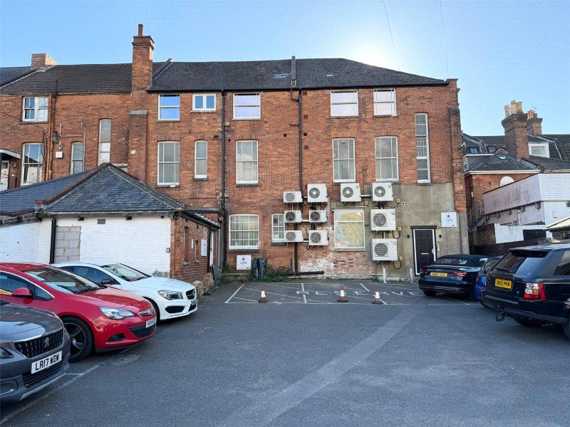 To the rear of the building is a large car park (13 spaces) with parking for both the commercial unit and allocated spaces for the apartments above. There is a bin and cycle store for the use of the apartments.