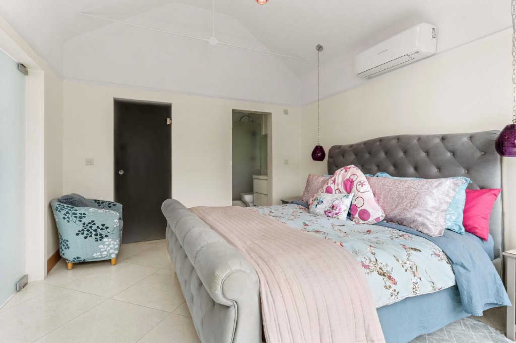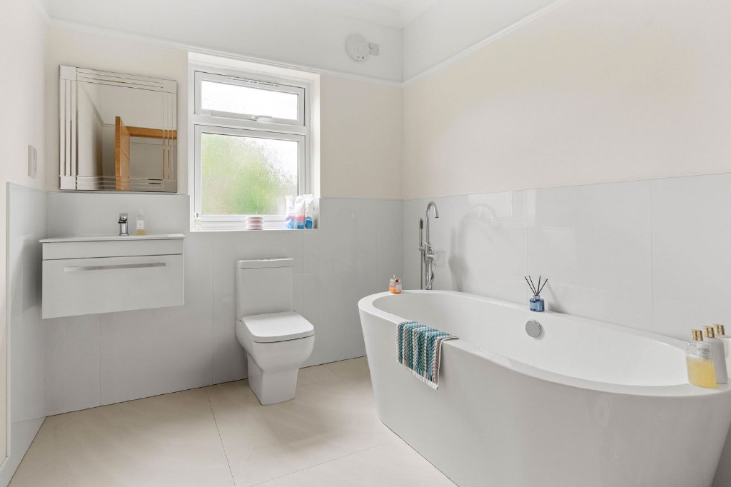 White Oaks features four generous double bedrooms and four beautifully appointed bathrooms, three of which are en suite. Each room has been thoughtfully designed with stylish décor and benefits from air conditioning throughout, ensuring comfort all year round, complemented by underfloor heating in selected areas. Of particular note is the principal bedroom suite, showcasing a vaulted ceiling and sliding doors that open directly onto the sun terrace and garden. This serene space includes a luxurious en suite shower room and a walk-in wardrobe, creating a perfect private retreat.