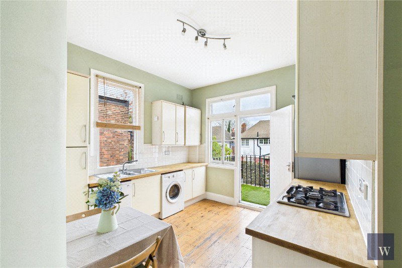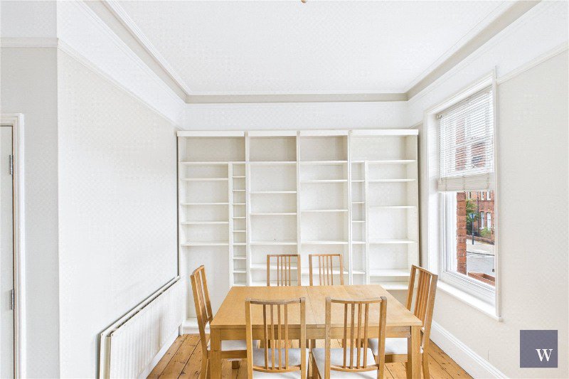 Occupying the first and second floors of an attractive period building within the Telford Park Conservation Area, this spacious three-bedroom maisonette offers generous proportions, flexible accommodation, and excellent natural light throughout. The first floor features a welcoming hallway with useful storage and leads into a bright reception room with period detailing and a feature fireplace, complemented by a separate kitchen with access to a small balcony and outdoor storeroom - ideal for additional storage. Two bedrooms on this level include a large double and a smaller double room, served by a well-presented family bathroom. Upstairs, the principal bedroom benefits from excellent floor space, eaves storage, and pleasant rooftop views, making it an ideal retreat. The flat offers good storage throughout, including the practical storeroom on the balcony and additional eaves space on the upper level.
