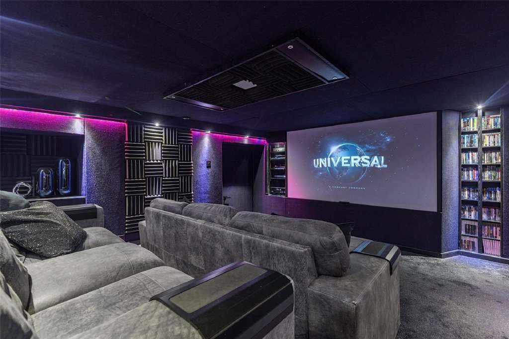 The property also includes a dedicated cinema room with tiered seating, sound conditioning, lighting design, 4k projection and 7.1 surround sound provided by a very high spec active/passive behind the screen speaker system. AV equipment and seating to be included at the guide price. Completing the ground floor are a walk in pantry with cooling system, a utility room, two separate WC’s a workshop and a lobby with extensive storage.