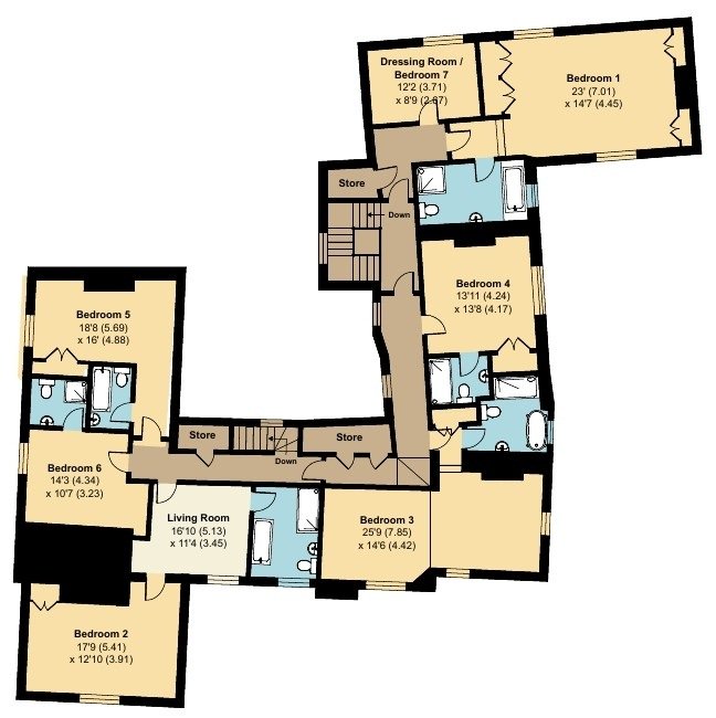 landings, an elegant feature that leads to an extensive landing and six en-suite bedrooms.