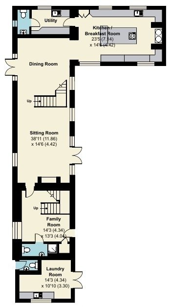 Two staircases lead to the first floor. The principal staircase is of generous proportions with two half