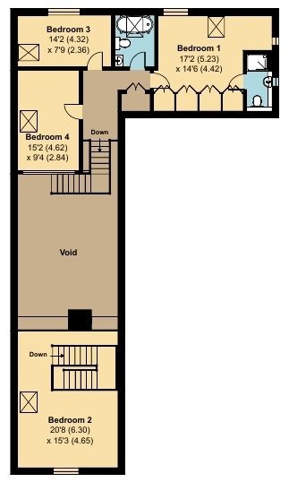 The first three bedrooms are particularly spacious. Each is beautifully presented with super king size