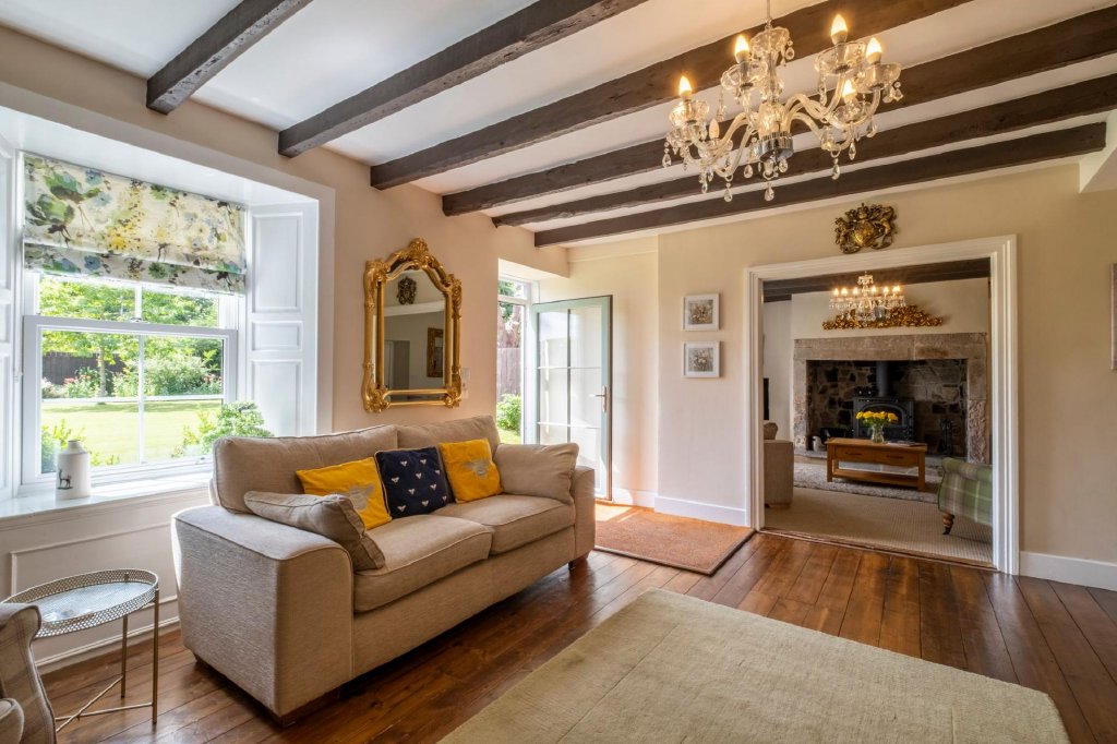 The two stunning living rooms flow seamlessly together and span the full width of the house, creating a wonderful and versatile space for relaxing and entertaining. A central archway subtly divides the space, while exposed stone walls and a feature log-burning stove bring in texture, warmth and character. With a door opening into the garden, this makes it the perfect place to gather with loved ones in every season.