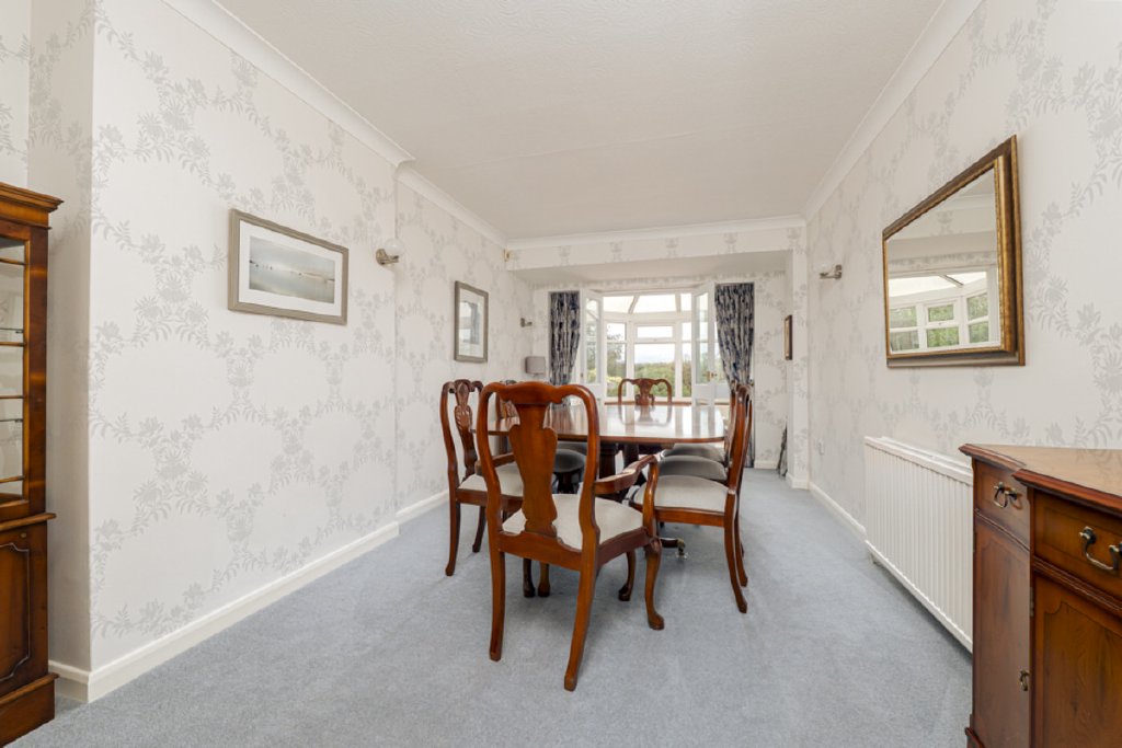 The property stands within mature, well-established grounds extending to approximately 0.28 acres. Manor Close comprises just four individually designed homes, with No. 4 occupying a particularly desirable position. To the front, there is ample hardstanding providing parking for several vehicles, together with a detached double garage. The bungalow is set behind a walled front garden, which is mainly laid to lawn with well-kept borders. The beautifully landscaped rear garden enjoys an open outlook across rolling countryside and has been lovingly maintained by the current owners for nearly 40 years. Now mature and thoughtfully designed for ease of maintenance, it offers year-round interest and includes a generous lawn, a variety of seating areas, and a charming fishpond with a wooden bridge forming an attractive focal point. A wooden, octagonal summerhouse is also included in the sale.